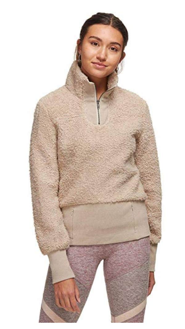 This cozy pull-over features a plush fleece face reminiscent of your favorite stuffed toy, giving your wife fun style, soft warmth, and much-needed comfort on chilly winter days. It's also equipped it with a pair of handy pockets, a zip-neck for ventilation if you head indoors, and thumbholes for extended coverage at the wrists in windy weather. This is one of those gifts she'll wear all the time.