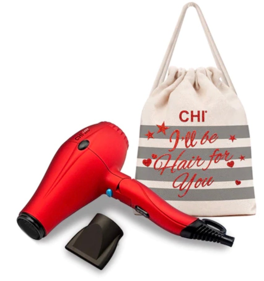 How cute is this set from CHI? It's complete with a tote that says, "I'll Be Hair For You." Plus, this easily portable, red hair dryer allows you to dry and style your hair without damaging it.