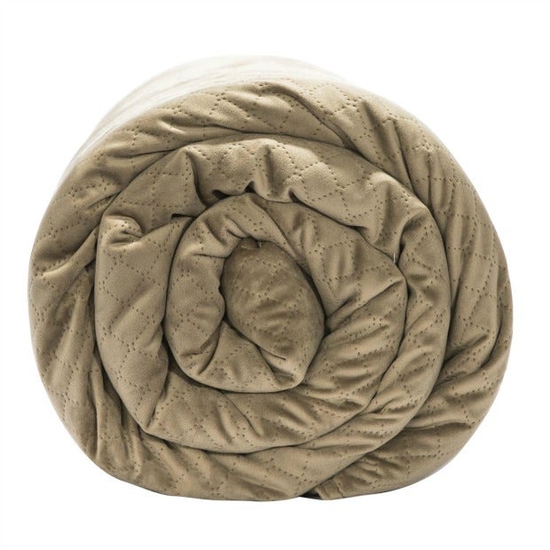This blanket consists of a fleecy top layer made of plush, soft, mink-like fur, and has a smooth bottom layer made from 300 thread-count 100 percent cotton. Ranging from 15-25 pounds, and available in Twin, Queen and King, Nest Bedding’s weighted blanket is washable and has a clean, lead-free fill made with small, glass beads sewn between two layers of poly-fill batting. The beads create deep pressure and muscle stimulation for a relaxing effect.