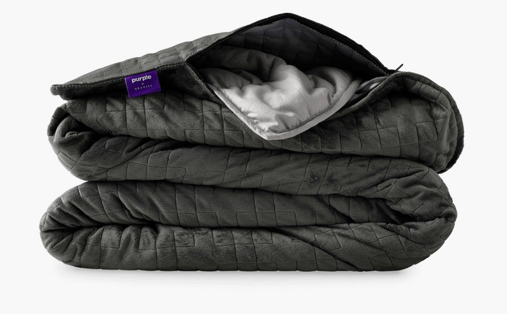 Sleep and feel better with the Purple + Gravity Weighted Blanket with dual-sided technology. Choose the cozy or the cool side and snuggle up in 35 pounds of comfort any time of the year. To help you sleep even greater and more relaxing overall, bundle up with the Purple + Gravity Weighted Sleep Mask. With 1/2-pound of evenly distributed weighted beads to give you the perfect pressure, it makes relaxing incredibly easy.