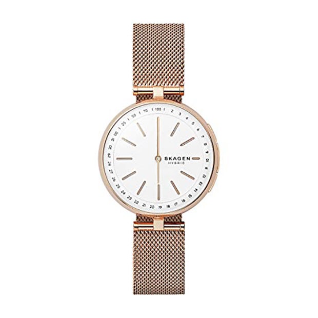 10. Skagen Hybrid Smartwatch Signatur T-Bar Rose Gold-Tone Steel-Mesh