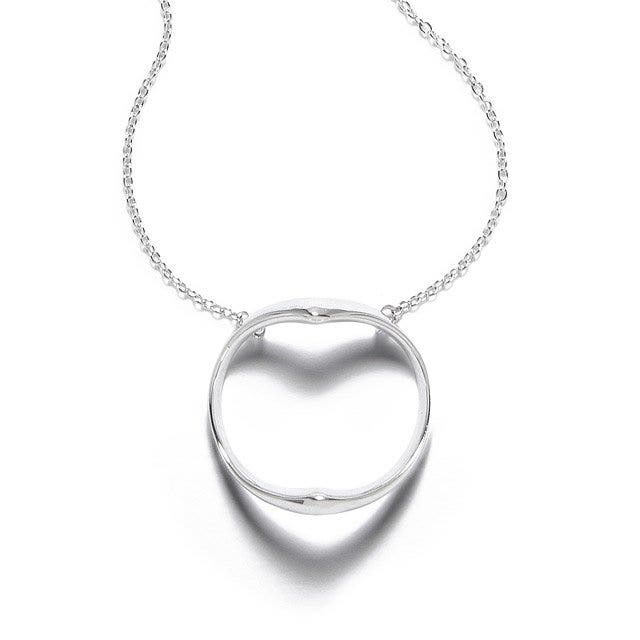 Hiro Yuki's pensive necklace embodies the sentiment that even though love is not always seen, it is always present. The silver pendant's unusual shape is designed to catch the light in such a way that it casts the shadow of a heart on the wearer's skin.