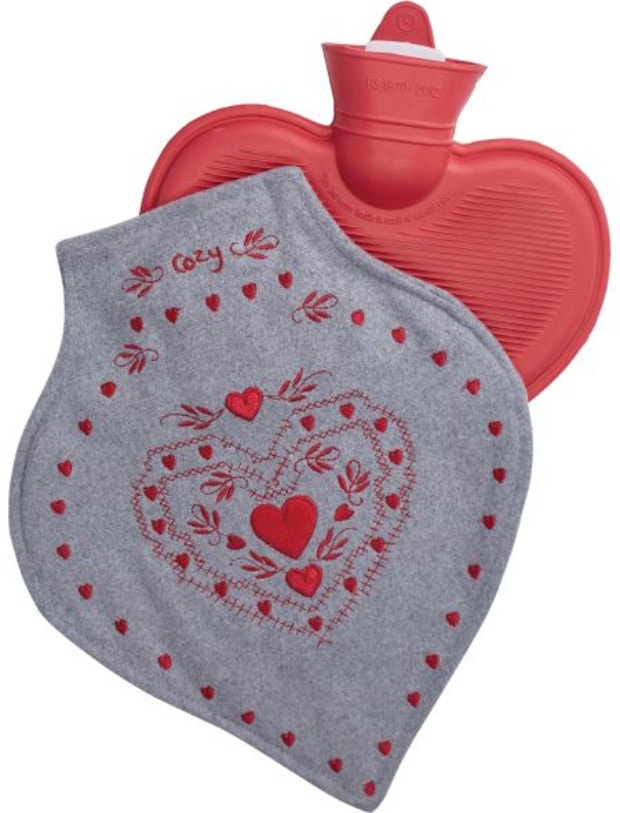 This hot water bottle is heart-shaped and has a soft, decorative and embroidered cover. Pour hot water into the thermoplastic bottle, and slip it under the bed covers a few minutes before you turn in. No matter how cold the air is, your bed will almost instantly become a sanctuary of toasty bliss!