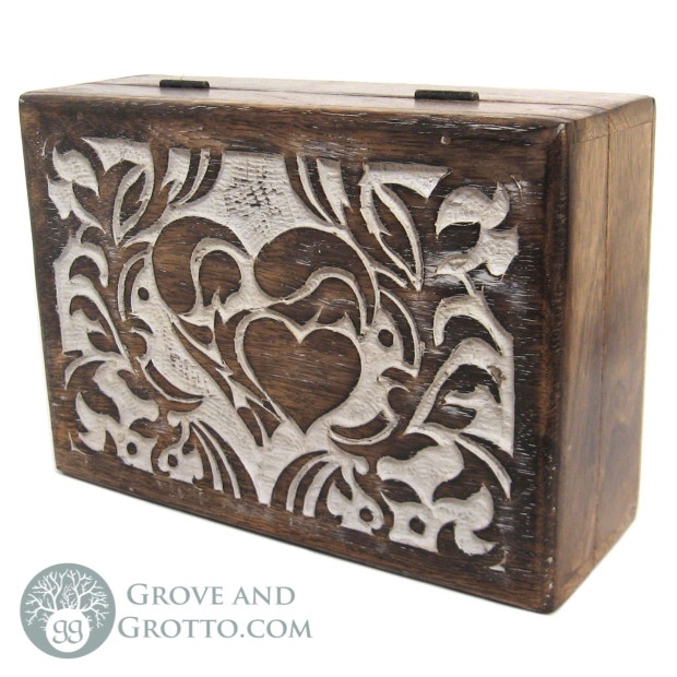 Keep all these special things close to your heart with this Mango wood box. Each handmade box is made from natural materials and is lined with black velveteen. Artisans also hand carve ornate designs into the top.