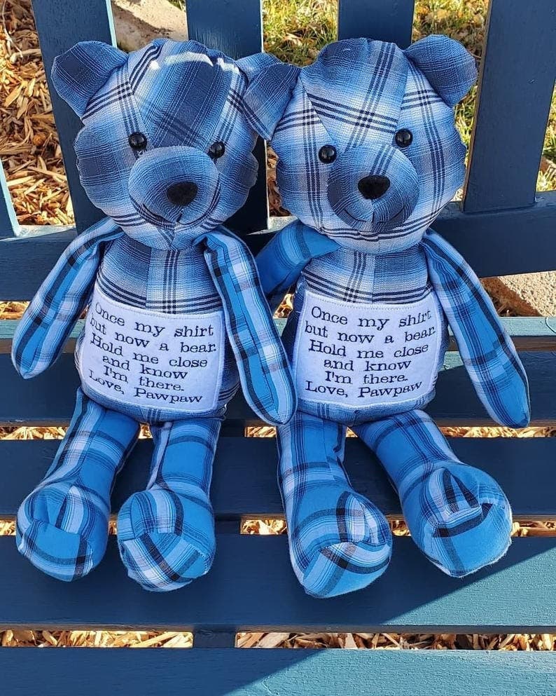 What a beautiful way to remember a loved one who has passed away or who you don't see very often. With a personalized message on the clothing, every time you hug this bear, your memories will come flooding back.