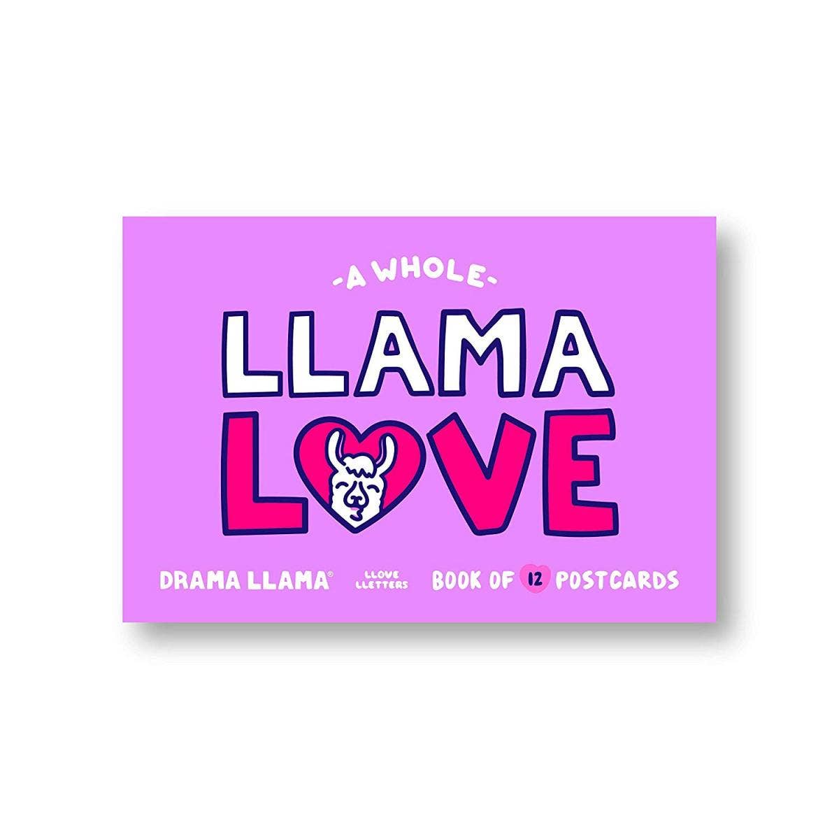 Drama Llama "A Whole Llama Love" Postcard Book comes with a set of 12 sassy, funny "Llove Lletters" and a rubber bracelet. These postcards are super fun to fill out and send to anyone on your list.