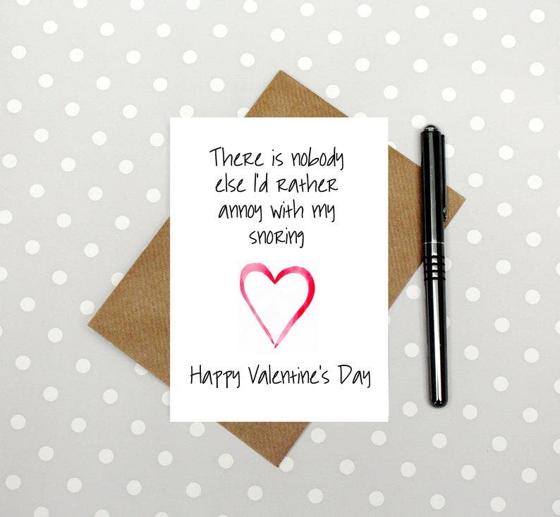Even though your partner snores through the night and prevents you from sleeping, you still love them right? This is a funny Valentine's Day card for your other half who has been putting up with your snoring since day one.