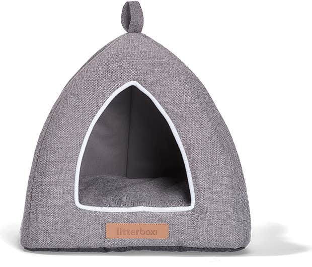 The adorable cat bungalow provides kitty with a soft enclosed bed and some privacy. The separate foam cushion is perfect for curling up on, while the walls shield from household commotion — perfect for studios and small apartments! This triangle-shaped hut will have your (human) guests smiling and your kitty smirking (as long as he or she is out of reach, that is.)