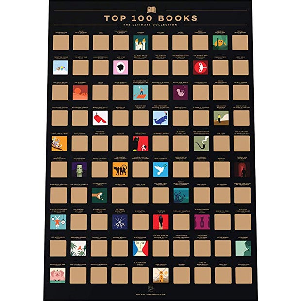 This poster is full of life-changing books loved by readers worldwide from ancient classics to recent bestsellers, award-winning novels and children’s stories. It'll help you challenge yourself and find the next good book to read. When you close the last page, scratch off the gold layer and reveal your favorite hero or a symbol that will remind you of that great book you've finished reading. A great way to keep track of your reading.