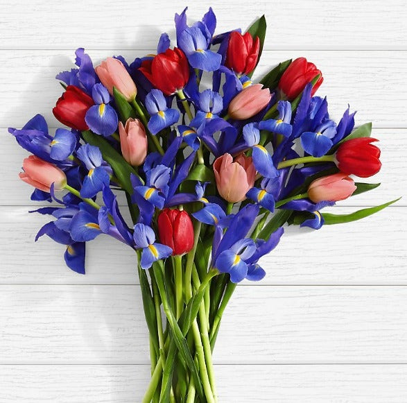 This bouquet is full of vibrant colors and includes 12 tulips and 12 iris. Mom won't be able to look away from this gorgeous arrangement.