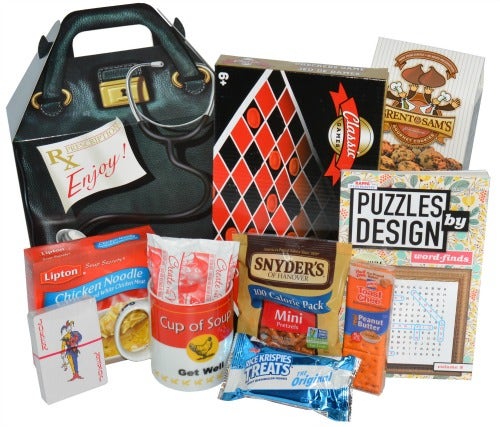 It’s a scary time for people with health issues who might have to quarantine away from loved ones. This box will give them a hug from afar, and includes chicken noodle soup, puzzles, snacks, and a checkerboard.