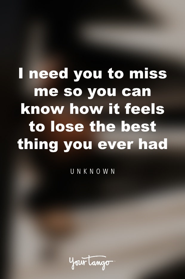 37. "I need you to miss me so you can know how it feels to lose the best thing you ever had!" — Unknown