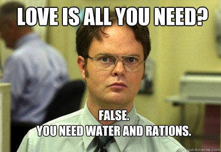 21. “Love is all you need? False, you need water and rations.”