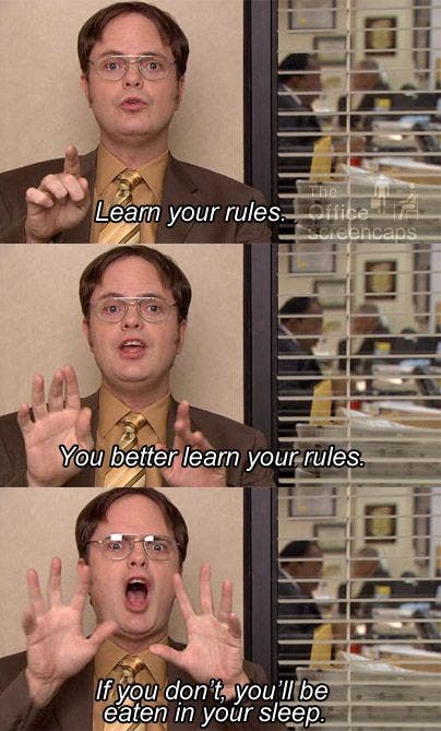 31. “Learn your rules. You better learn your rules! If you don’t, you’ll be eaten in your sleep.”