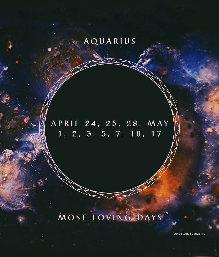 Most loving days: April 20, 21, 24, May 4, 5, 6, 10, 11, 17