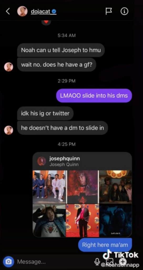 Doja Cat called Noah Schnapp a “snake” and a “very dumb kid” for leaking Instagram DMs about Joseph Quinn.