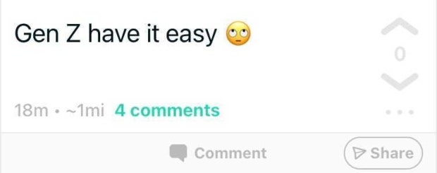 Which is why this person believes that Gen Z has it easy, frowny-face. This, and probably for other reasons.