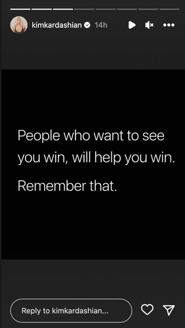 "People who want to see you win will help you win. Remember that,” she posted next, although she didn’t clarify what her definition of winning is.