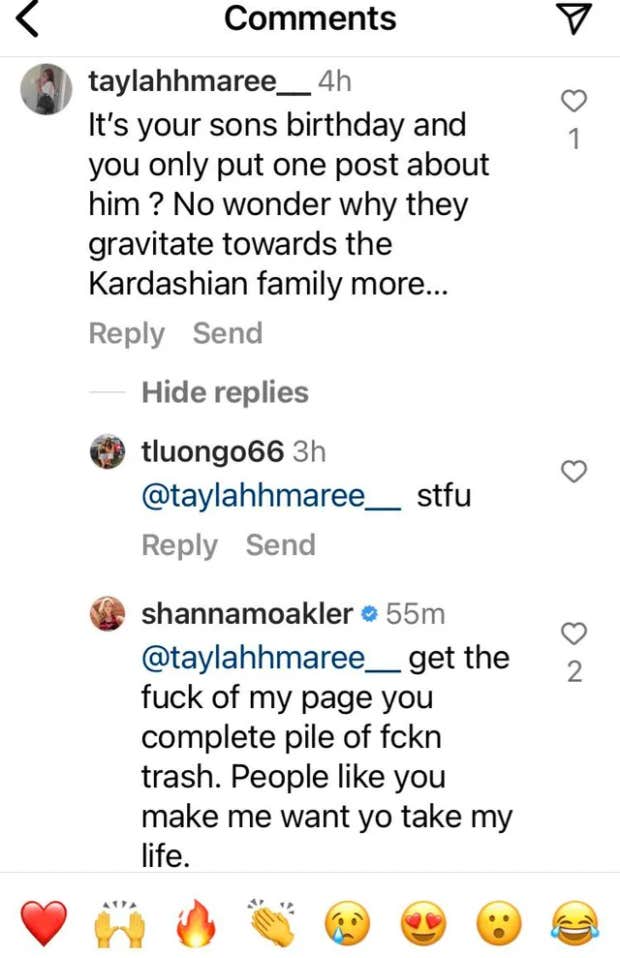 Travis Barker's ex-wife, Shanna Moakler, threatened suicide after receiving criticism from a fan over her son’s birthday post.