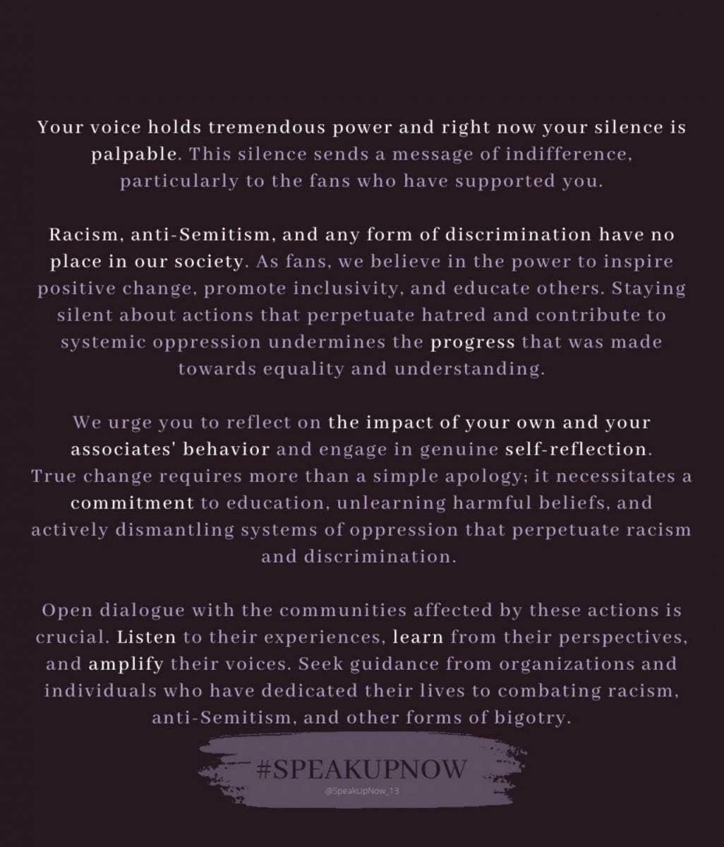 “Your voice holds tremendous power and right now, your silence is palpable,” fans wrote in an open letter to Swift on Twitter.