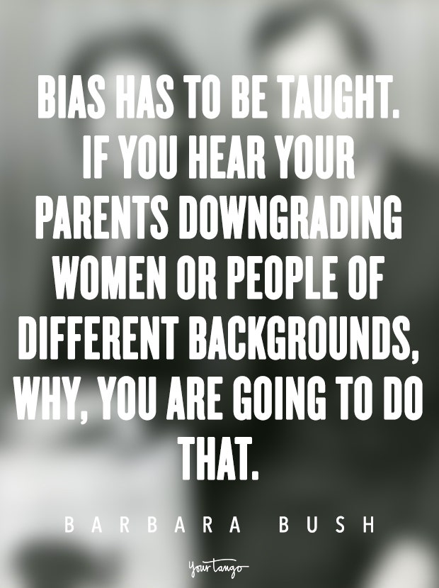 "Bias has to be taught. If you hear your parents downgrading women or people of different backgrounds, why, you are going to do that."