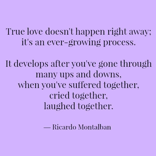 1. "True love doesn't happen right away; it's an ever-growing process. It develops after you've gone through many ups and downs, when you've suffered together, cried together, laughed together." — Ricardo Montalban