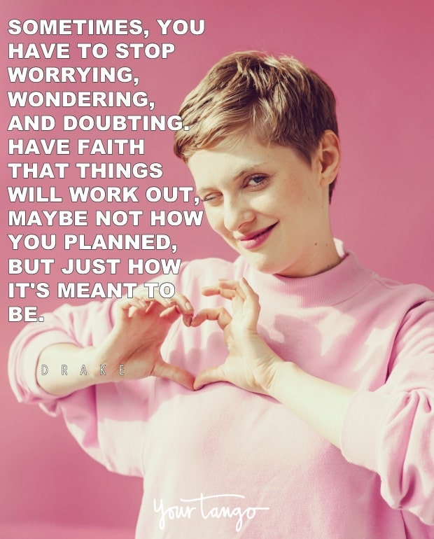 "Sometimes, you have to stop worrying, wondering, and doubting. Have faith that things will work out, maybe not how you planned, but just how it’s meant to be." — Drake