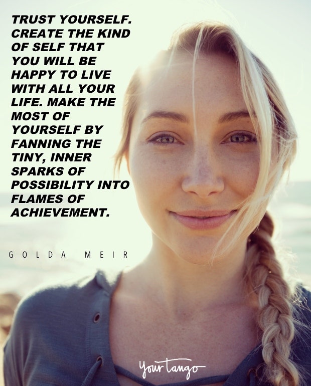 "Trust yourself. Create the kind of self that you will be happy to live with all your life. Make the most of yourself by fanning the tiny, inner sparks of possibility into flames of achievement." — Golda Meir