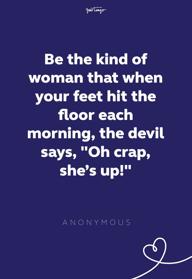 "Be the kind of woman that when your feet hit the floor each morning, the devil says, 'Oh crap, she’s up!'" — Anonymous