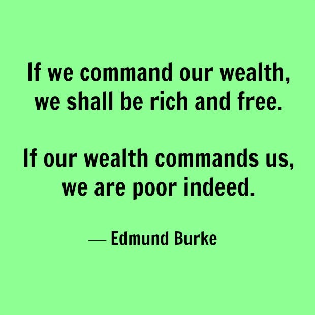 15. "If we command our wealth, we shall be rich and free. If our wealth commands us, we are poor indeed." — Edmund Burke