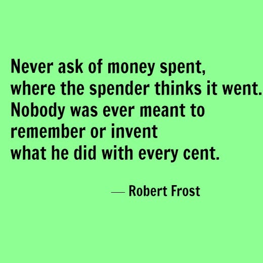 5. "Never ask of money spent, where the spender thinks it went. Nobody was ever meant to remember or invent what he did with every cent." — Robert Frost