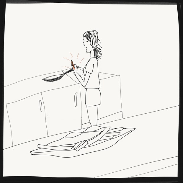 So many burns just for eggs and chips, how TF do people have dinner parties? Illustration by author.