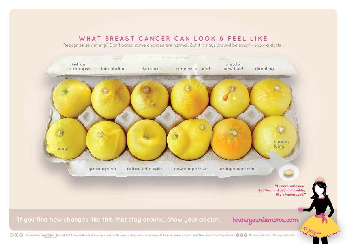 That's why this crate of lemons sharing the signs of breast cancer totally caught my eye.