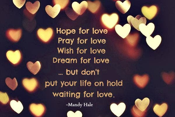 Hope for love, pray for love, wish for love, dream for love ... but don't put your life on hold, waiting for love. — Mandy Hale