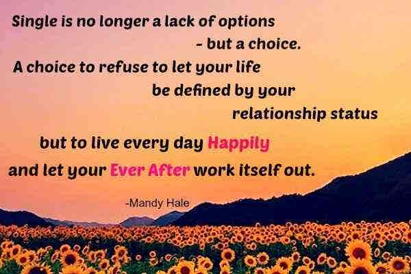 Single is no longer a lack of options, but a choice. A choice to refuse to let your life be defined by your relationship status but to live every day happily and let your ever after work itself out. — Mandy Hale