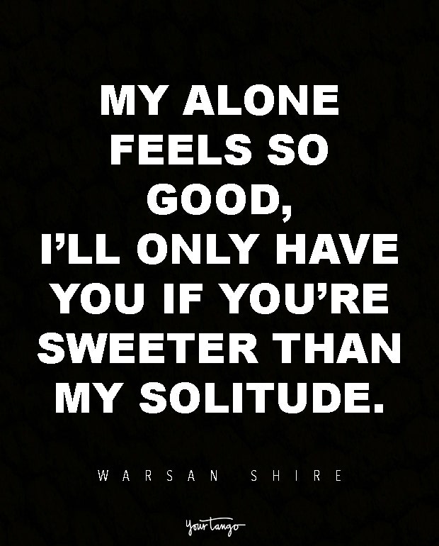 My alone feels so good, I’ll only have you if you’re sweeter than my solitude. — Warsan Shire