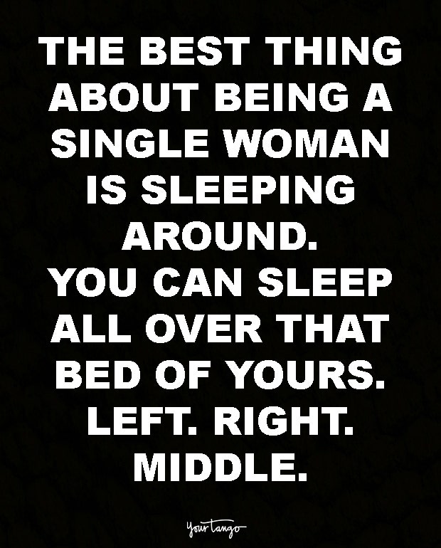 The best thing about being a single is sleeping around. You can sleep all over that bed of yours. Left. Right. Middle. Wherever.
