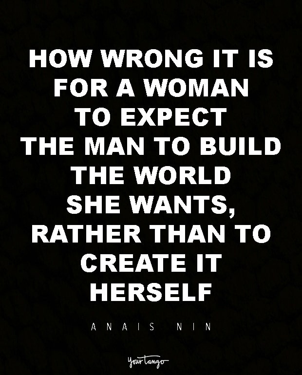 How wrong it is for a woman to expect the man to build the world she wants, rather than to create it herself. — Anais Nin