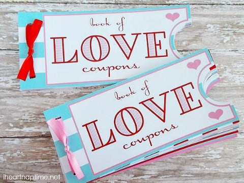 This one is easy-peasy. Simply print out the coupons you want, cut them out, and tie a bow through the paper.