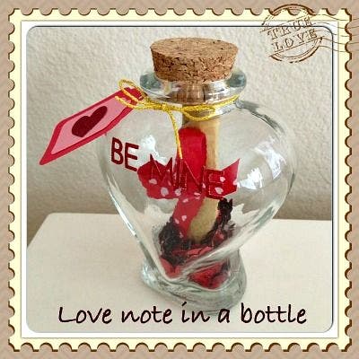 Not only is this easy to make (writing your love note and decorating the bottle with confetti hearts, and stickers... Could life be any simpler?), it's a great idea for a thoughtful and personal custom gift.