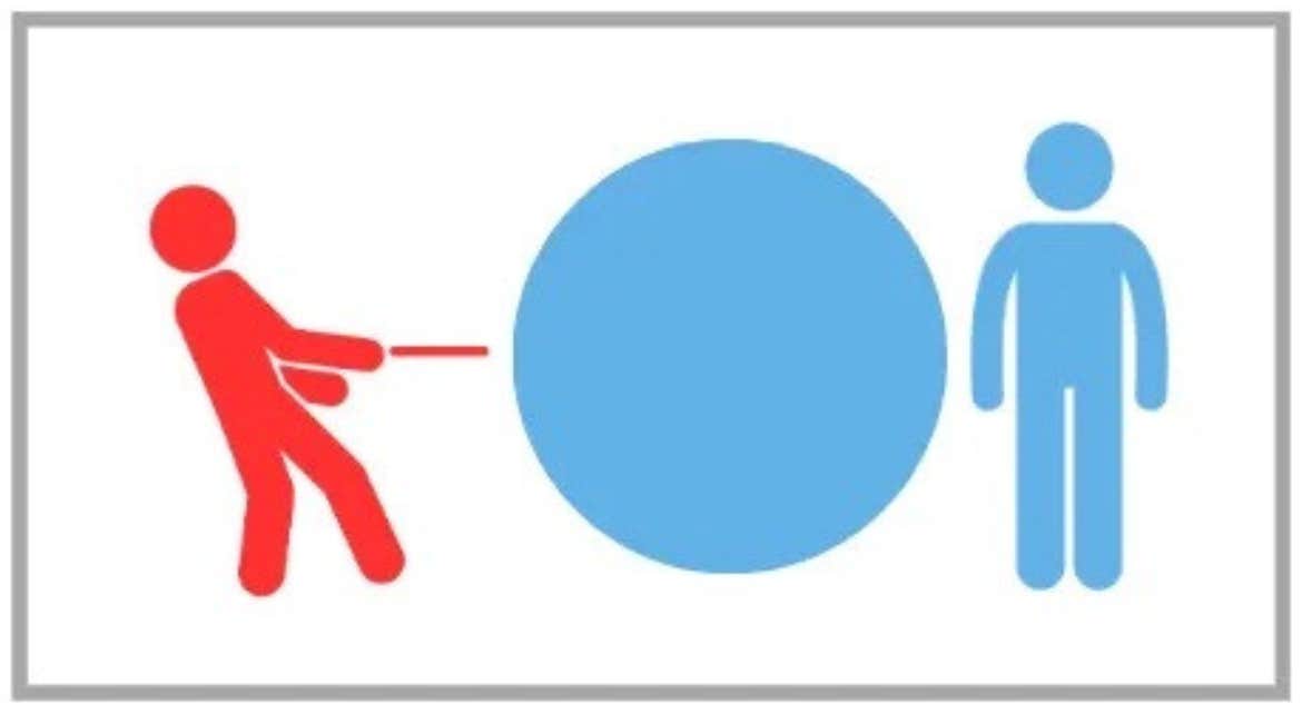 When you (red) employ the pulling method, the space between the two people is filled mostly with them.