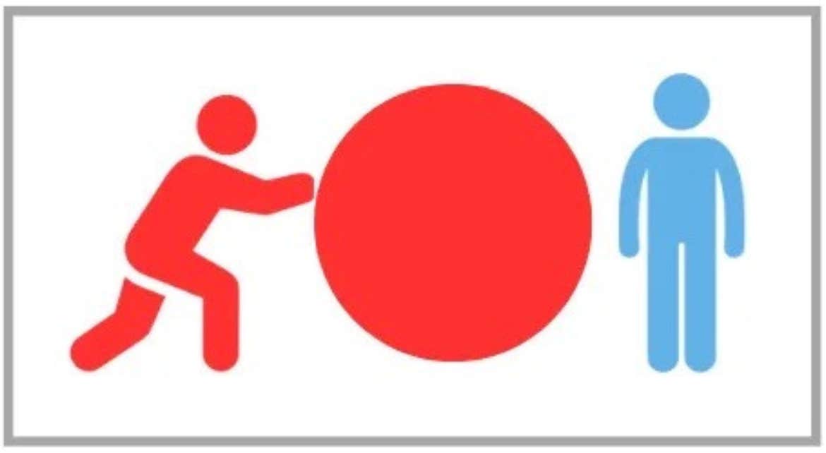 When you (red) employ the pushing method, the space between the two people is filled only with you. There is no room for the other person.