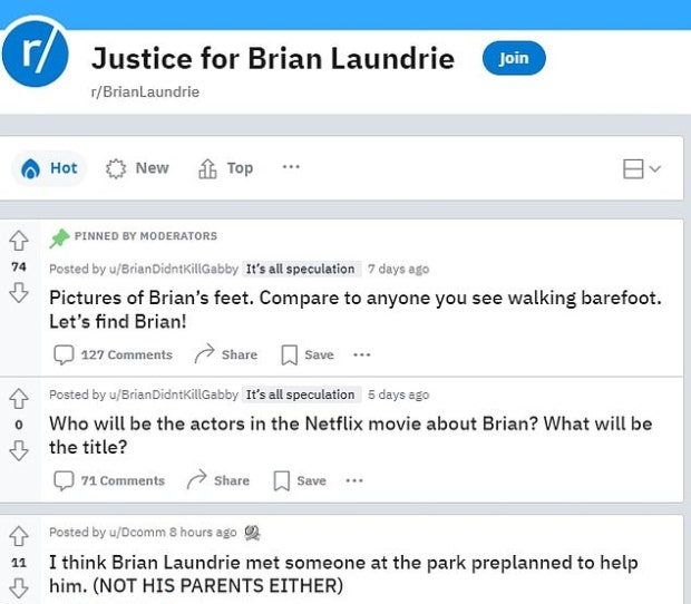 Supporters Of Brian Laundrie Have Created A 'Brian Lives Matter' Movement On Reddit — And It's Full Of Incels