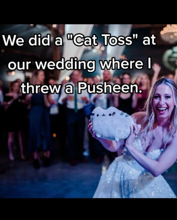 The bride did a 'cat toss,' instead of a bouquet toss, and her wedding reception.