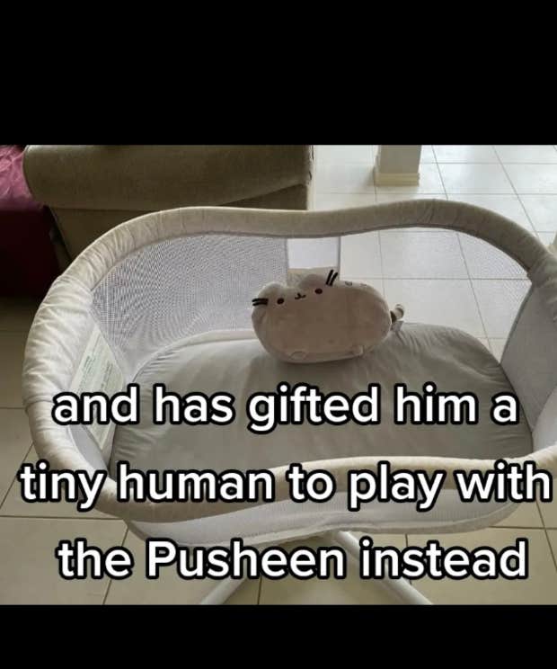 The bride then posted that “the universe had different plans for Peter, and has gifted him a tiny human to play with the Pusheen instead.”