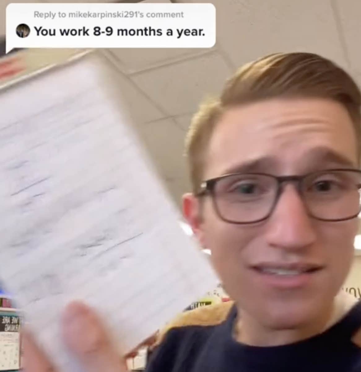 A person in his comments called teachers out for working “8-9 months” out of the year. He responded in a follow-up video, where he cleverly used some math to prove just how hard teachers work.