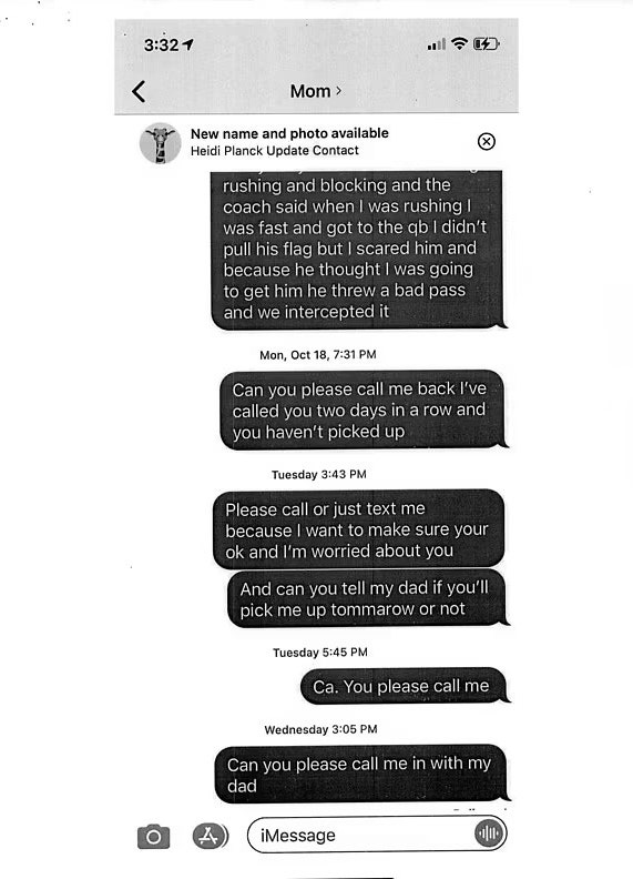 Heidi Planck's son begged her to come home over text.