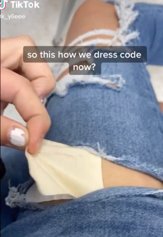 Kylie stated that the duct tape caused her skin to have a reaction, and claimed she was going to use the TikTok post to show the school board how “insane” it was that she was made to wear duct tape under the holes in her jeans.