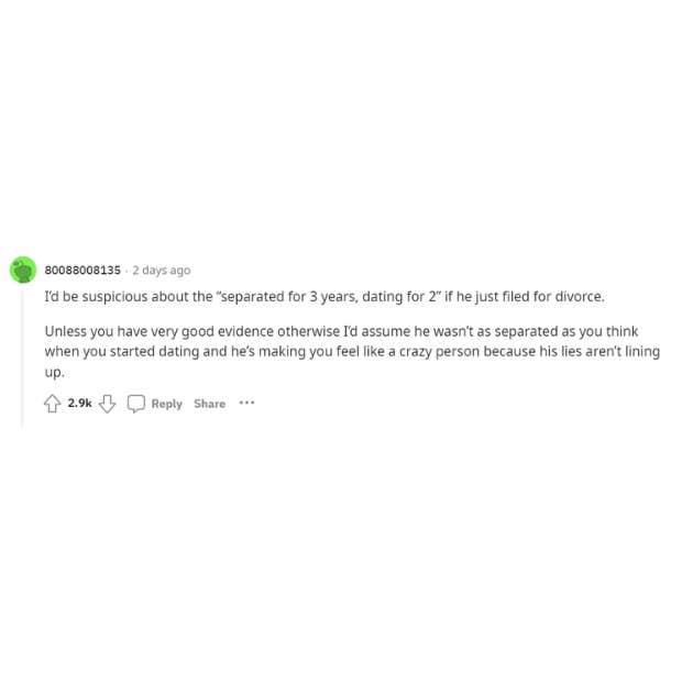“We've been together [for] two years and this whole time I have not been able to see his daughter or talk to her,” she wrote to Reddit’s “r/Parenting” subreddit. “He just barely filed the divorce a couple [of] weeks ago and they have been separated for 3 years at this point,” she adds, referring to him and his ex.
