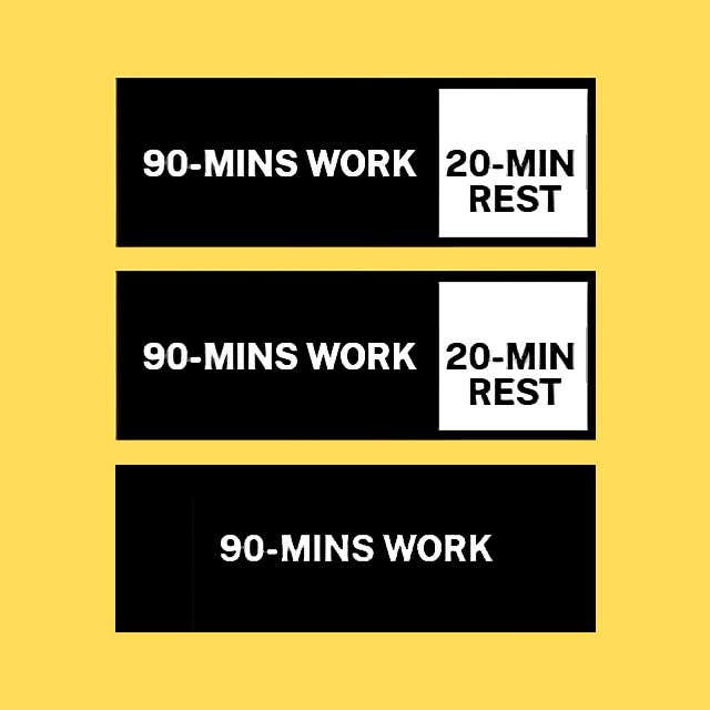 To optimize your productivity, sandwich 90–120 minute work blocks with 10–20 minute breaks to recharge.